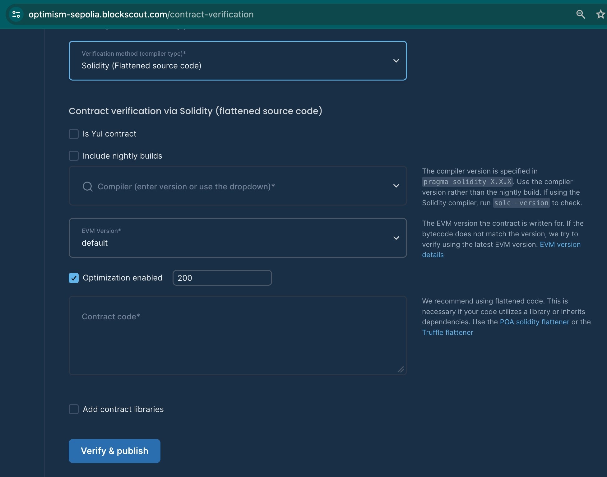 - EVM Version: Select the correct EVM version if known, otherwise use default.