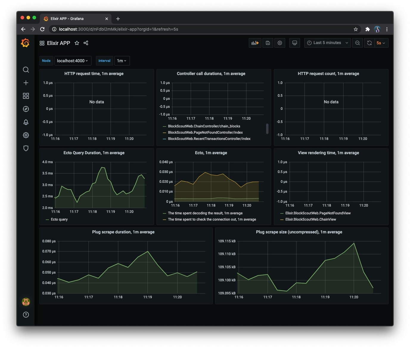 BlockScout is setup to export Prometheus metrics at/metrics.
