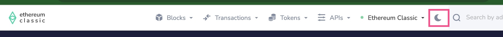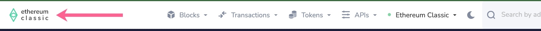 The comprehensive search bar allows for search by address, token name, token symbol, transaction hash, block number, tag or project name. It is typically the easiest way to find data quickly, and populates with inline results as you type.Custom Project Logo